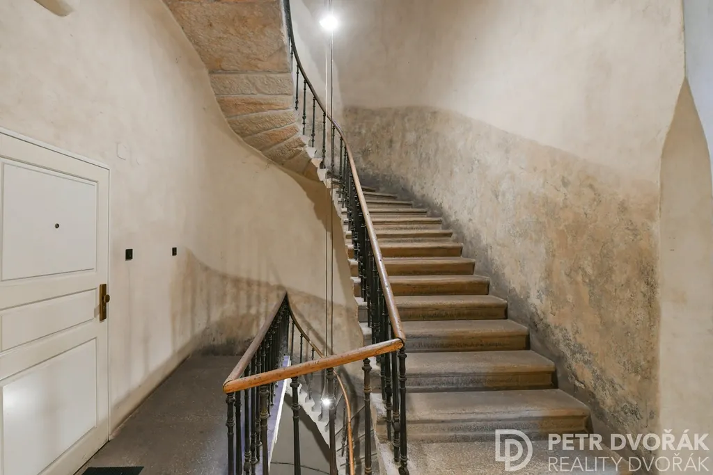 Dům stojí od 15. století. Turisté chodí kolem, ale dovnitř nevstoupí – průjezd s kamennou dlažbou, schodiště s litými balustrádami a obnažené zdivo jsou každodenní realitou těch, kdo tu bydlí. Dům je součástí Pražské památkové rezervace UNESCO a prošel citlivou rekonstrukcí – ne aby vypadal historicky, ale protože historický je.
