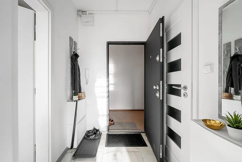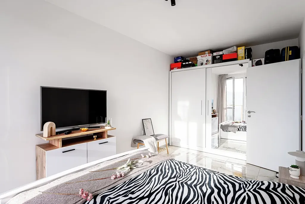 Dispozice bytu je řešena s důrazem na maximální využití každého metru čtverečního. Vstupní chodba nabízí dostatek úložného prostoru a plynule navazuje na moderně řešenou koupelnu se sprchovým koutem, toaletou a praktickými odkládacími plochami. Hlavní obytný prostor o velikosti přibližně 20 m² poskytuje dostatek místa pro kuchyňskou linku, jídelní část i obývací zónu. Na něj navazuje samostatná ložnice o velikosti cca 13 m², která je velmi dobře řešena z hlediska úložných možností a zároveň umožňuje pohodlný pohyb i manipulaci v prostoru, přičemž nabízí přímý vstup na balkon.