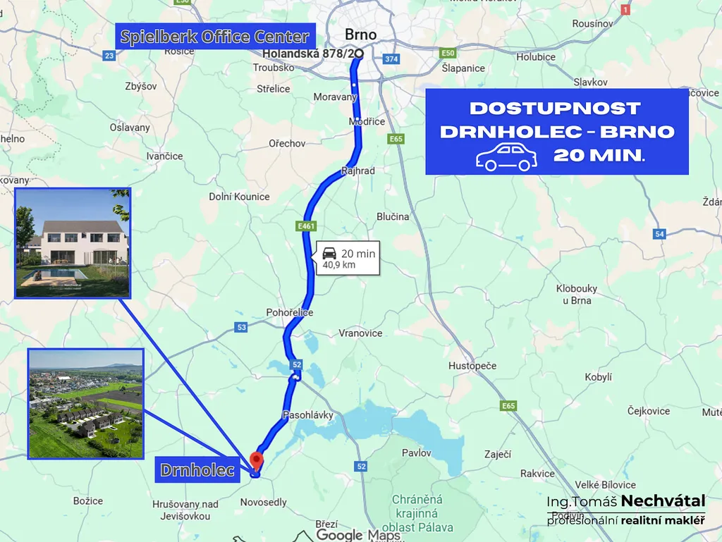 Když zatoužíte po výletu nebo odpočinku, jste za pár minut u Mušovských jezer, na Pálavě, v Mikulově nebo Znojmě. A pokud za prací dojíždíte do Brna, autem tam jste za 35 minut.