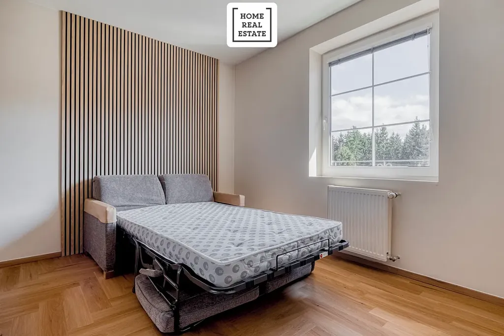 V základní ceně nájmu je jednotka vybavena kuchyňskou linkou. Za příplatek 1 000 Kč měsíčně je možné si jednotku pronajmout i ve variantě plného vybavení, která zahrnuje moderní rozkládací pohovku o šířce 140 cm včetně kvalitní matrace od renomovaného italského výrobce BK Italia, jídelní stůl, dvě židle a šatní skříň.