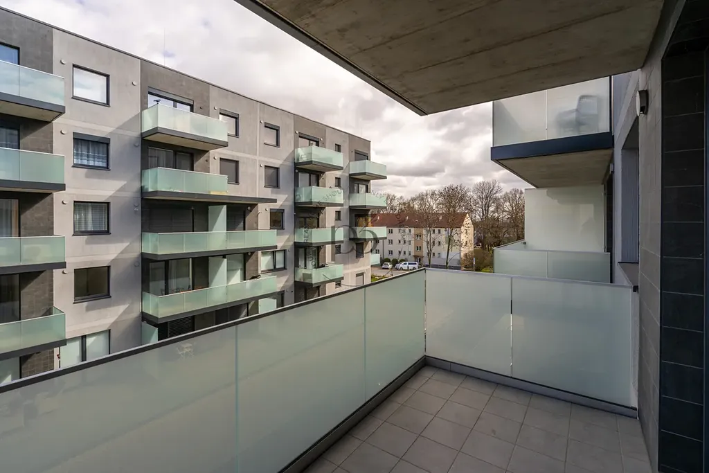 Nabízíme Vám k dlouhodobému pronájmu zcela nový byt o dispozici 2+kk nacházející se ve 3. patře novostavby s výtahem, o celkové výměře 43m2 a balkónem 7m2 v klidné a vyhledávané lokalitě Prahy 9 - Prosek. Byt je situován na východní stranu.