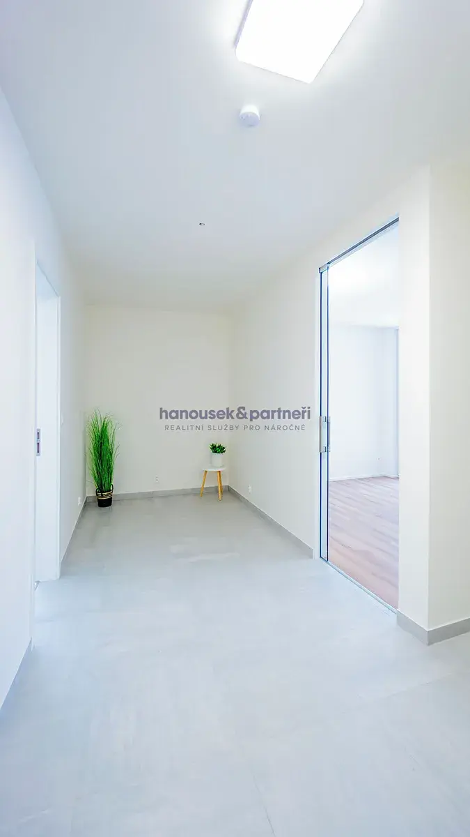 Kolaudace stavby byla dokončena na konci roku 2023. Vytápění a ohřev vody jsou zajištěny centrálně domovní kotelnou se dvěma plynovými kotly. Ve všech místnostech je podlahové topení, na kterém je položená odolná a praktická vinylová podlaha. Vodovod a kanalizace jsou obecní. Budova je v energetické třídě B a všechna okna mají nízkoenergetické trojsklo, takže z vyúčtování nemusíte mít obavy. Dveře a obložky jsou od kvalitního českého výrobce SAPELI. Obklady a dlažba pochází od Italského výrobce Marazzi.