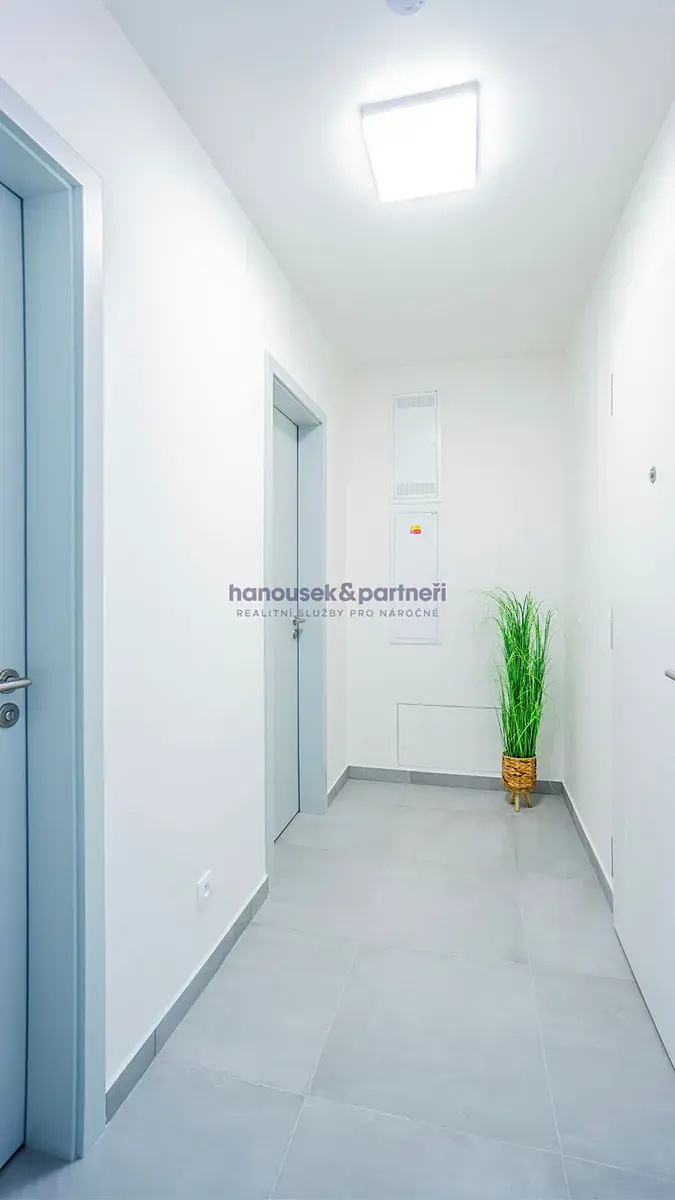 Kolaudace stavby byla dokončena na konci roku 2023. Vytápění a ohřev vody jsou zajištěny centrálně domovní kotelnou se dvěma plynovými kotly. Ve všech místnostech je podlahové topení, na kterém je položená odolná a praktická vinylová podlaha. Vodovod a kanalizace jsou obecní. Budova je v energetické třídě B a všechna okna mají nízkoenergetické trojsklo, takže z vyúčtování nemusíte mít obavy. Dveře a obložky jsou od kvalitního českého výrobce SAPELI. Obklady a dlažba pochází od Italského výrobce Marazzi.