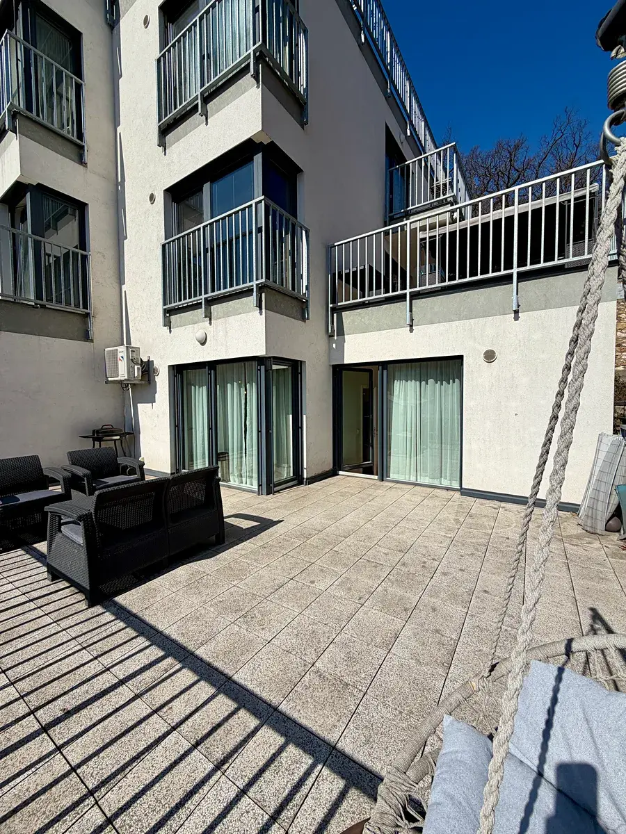 Byt má podlahovou plochu 55,30 m² a jeho velkou předností je prostorná terasa o velikosti 33,30 m², která nabízí ideální místo pro relaxaci i posezení. K bytu náleží také sklep o velikosti 1,50 m².