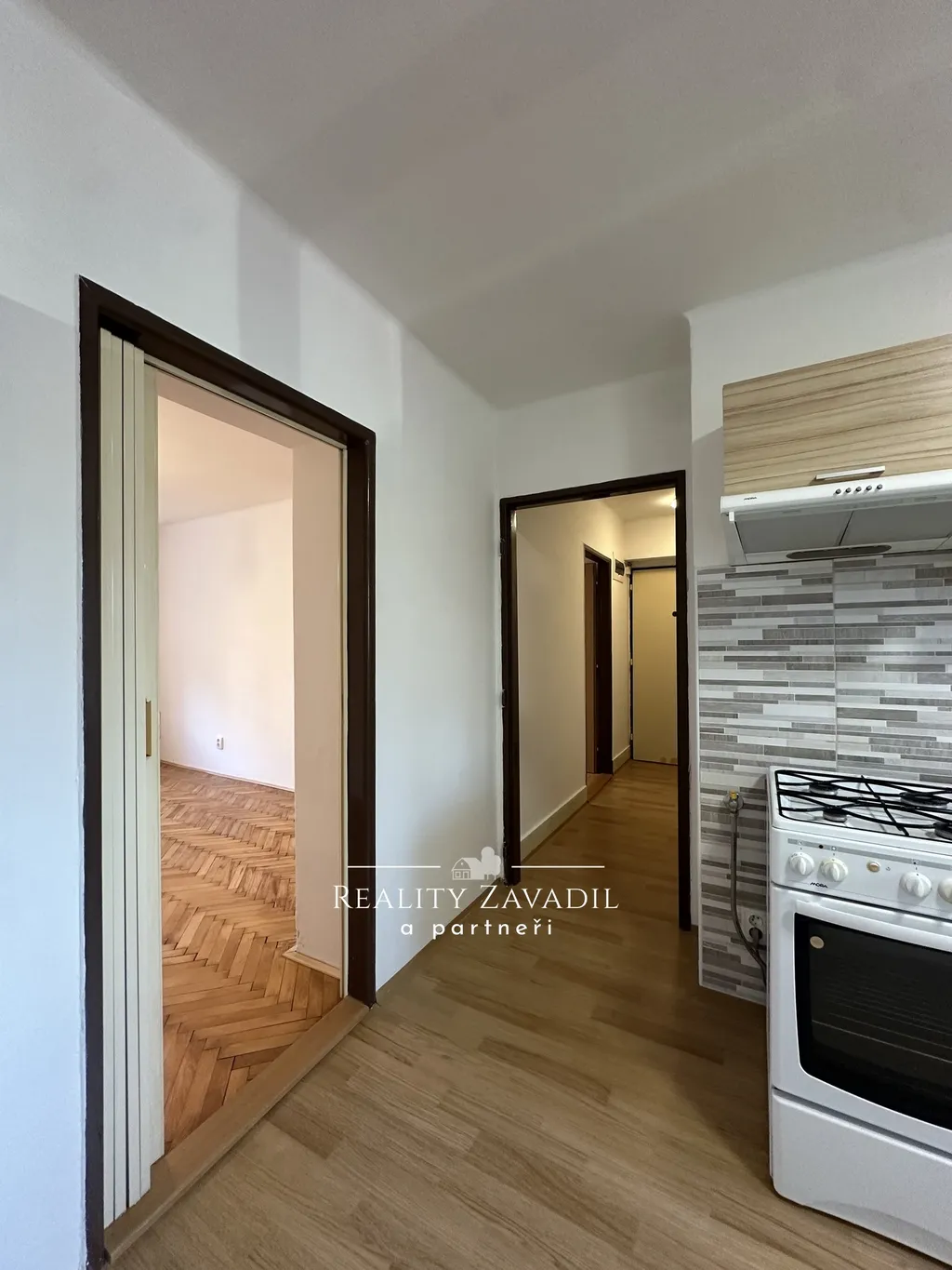 Byt se nachází v udržovaném bytovém domě a je nabízen v částečně vybaveném stavu. Dispoziční řešení se vyznačuje účelností, přičemž centrální část tvoří vstupní chodba, která nezávisle propojuje jednotlivé obytné místnosti. Samostatná kuchyně je vybavena linkou v dřevěném dekoru včetně plynového sporáku, volně stojící chladničky a myčky nádobí. Hlavní obytný pokoj je vyklizený a připravený k vlastnímu zařízení, ve druhé obytné místnosti se nacházejí původní dřevěné parkety. Sociální zařízení je tvořeno koupelnou s vanou, umyvadlem a toaletou, přičemž je kompletně obloženo keramickým obkladem. Praktickým benefitem dispozičního řešení je komora s kovovým regálovým systémem umístěná přímo v bytě, která poskytuje dostatek úložného prostoru.