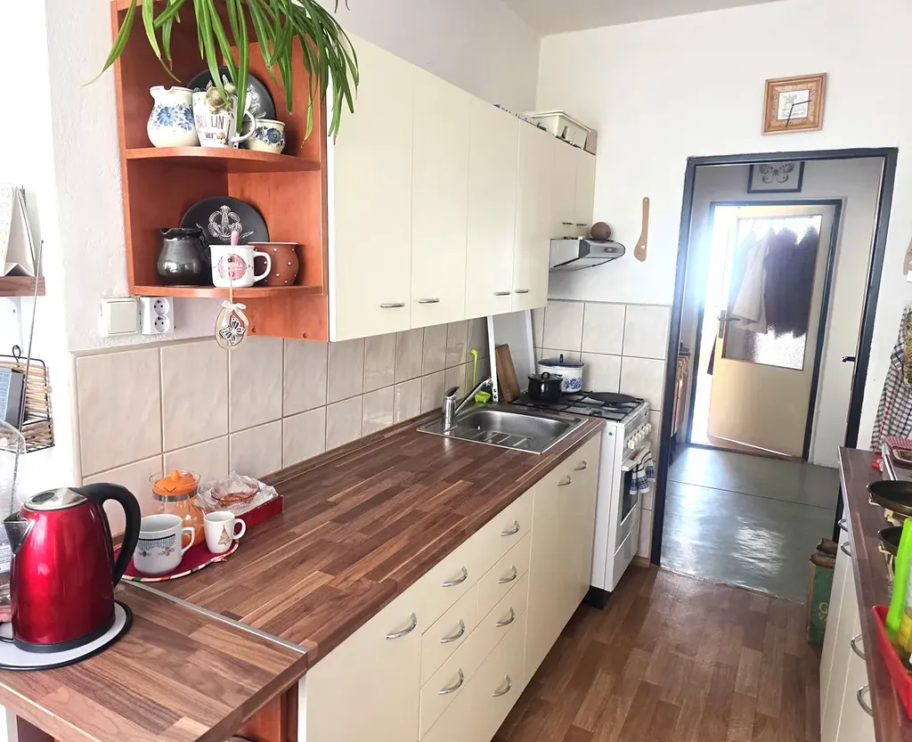 Jedná se o byt, který zaujme především svým prostorem a potenciálem. Dispozice nabízí tři samostatné pokoje a velkou prostornou kuchyň s jídelním koutem. Díky rozložení místností je ideální pro rodinné bydlení, tak i pro kombinaci bydlení a práce z domova.