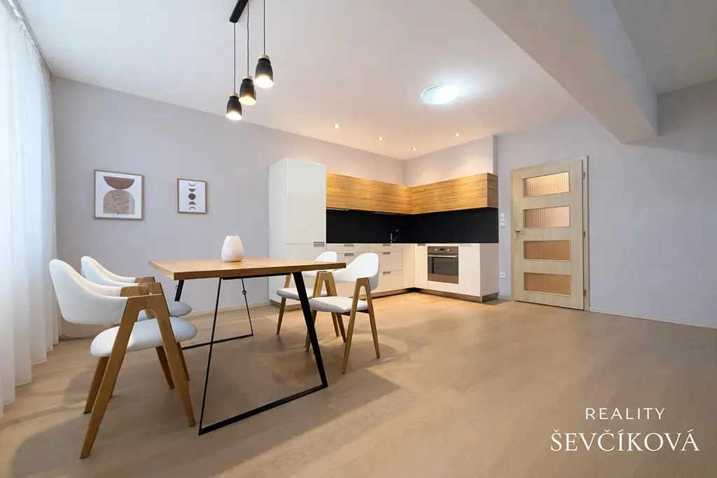 Dispozici tvoří vstupní chodba s velmi prostornými vestavěnými skříněmi, koupelna se sprchovým koutem a WC, dvě neprůchozí ložnice a velkorysý obývací pokoj s kuchyňským koutem a jídelní částí se vstupem na menší lodžii. Ložnice jsou orientovány do klidného vnitrobloku, kde se nachází také veřejné parkoviště s dostatečnou kapacitou.