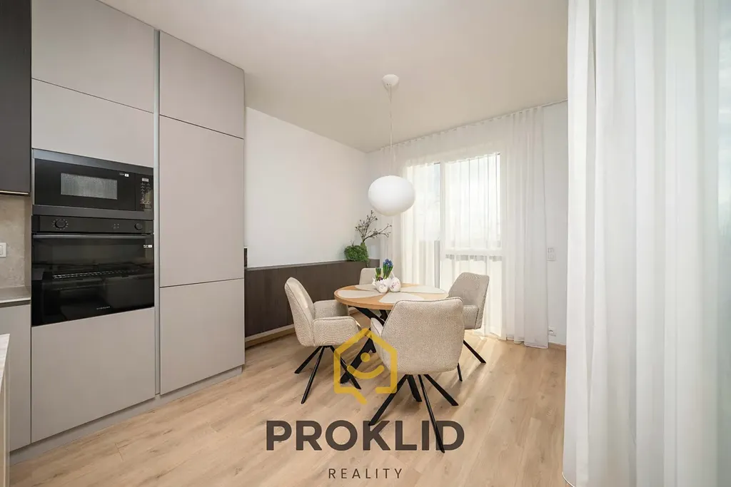 Velkou výhodou je zde komora navržená jako další místnost, která Vám spolu s vestavěným nábytkem kolem pračky a sušičky zajistí další úložný prostor. Byt je vybaven nábytkem na míru z prémiových materiálů, záclonami na míru a kvalitním osvětlením, kuchyně je osazena kvalitními spotřebiči značky Samsung.