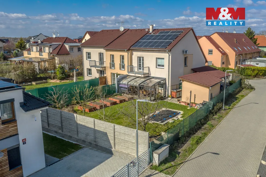 Hledáte moderní rodinné bydlení v klidném prostředí, které nabídne komfort, úsporu i dostatek prostoru? V obci Zlonín nabízíme velmi pěkný zděný řadový rodinný dům o užitné ploše 124 m² s pozemkem 452 m². Dispozice s 4 pokoji poskytuje ideální zázemí pro rodinu i pohodlné pracovní místo z domova. Ve spodní části je prostorný obývací pokoj s kuchyní a v patře jsou pak dvě ložnice a pracovna. Velkým benefitem je krytá terasa se zastřešením Alukov, balkon, garáž se sekčními elektrickými vraty, kryté parkovací stání i další venkovní místo. Praktický zahradní domek z Ytongu rozšiřuje úložné možnosti. O příjemné bydlení se stará plynový kotel, kombinovaný výměník vody, krbová kamna, změkčovací úpravna vody a fotovoltaika 6,3 kWp s baterií 11,6 kWh. Klidná lokalita s výbornou dostupností vlakem, autobusem i autem. Praha autem vzdálenost 12 minut. Rychlé převzetí po dohodě.