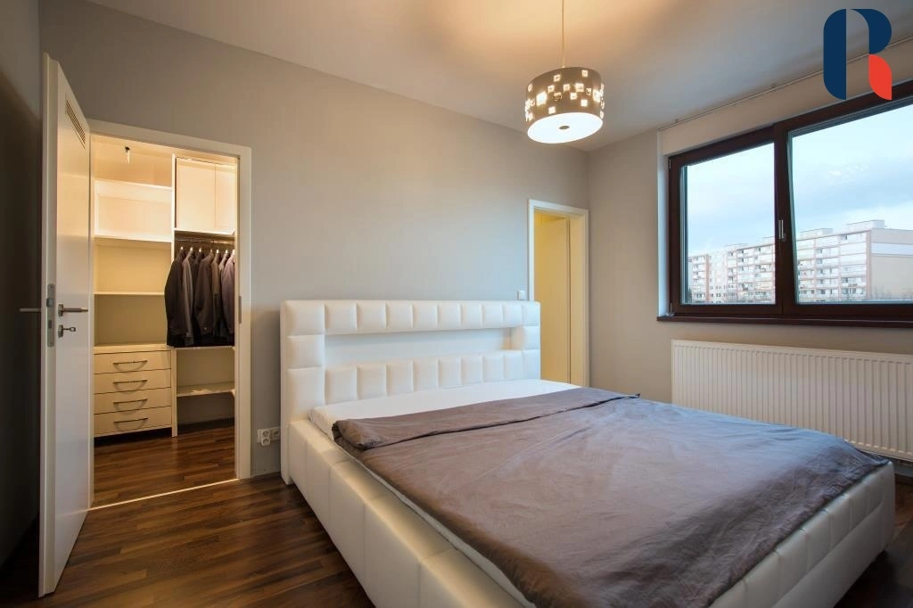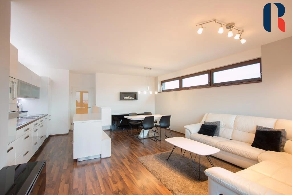 Dovolujemi si vám nabídnout byt v novostavbě o dispozici 3+kk s velkým balkonem a výhledem o celkové výměřě 105 m2. K bytu náleží parkovací stáním v suterénu domu. Byt je situován do čtvrtého patra s krásným, nerušeným výhledem, je kompletně zařízen a připraven k okamžitému nastěhování. Plně vybavenákuchyňská linka, dvě koupelny, vestavěné skříně, venkovní elektrické žaluzie. Byt má ideální dispozici s neprůchozími pokoji, druhá koupelna a šatna u jedné z ložnic.