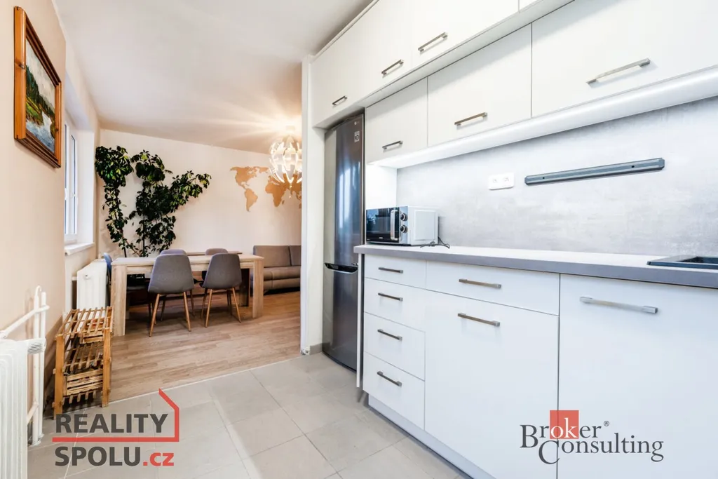 Dispozice bytu: vstupní chodba s vestavěnou skříní, WC, koupelna, obývací pokoj propojený s kuchyňskou linkou, dětský pokoj, ze kterého je vstup do ložnice.