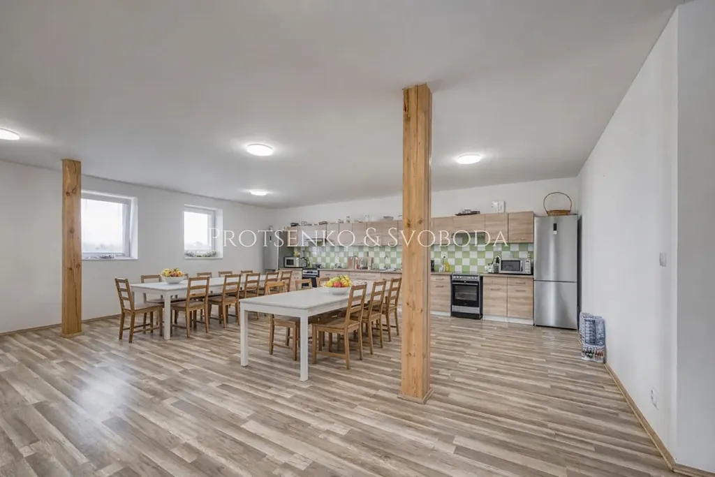 Celková užitná plocha přízemí činí 454 m², další obrovský potenciál nabízí půdní prostory o výměře 472 m², které jsou již připraveny k vestavbě včetně přípojek na vodu, odpad i elektřinu. Nad částí ubytovny je navíc připraveno napojení na tepelné čerpadlo. Tento prostor tak otevírá další možnosti rozšíření ubytovací kapacity, soukromého zázemí či vytvoření zcela nové funkční části objektu.
