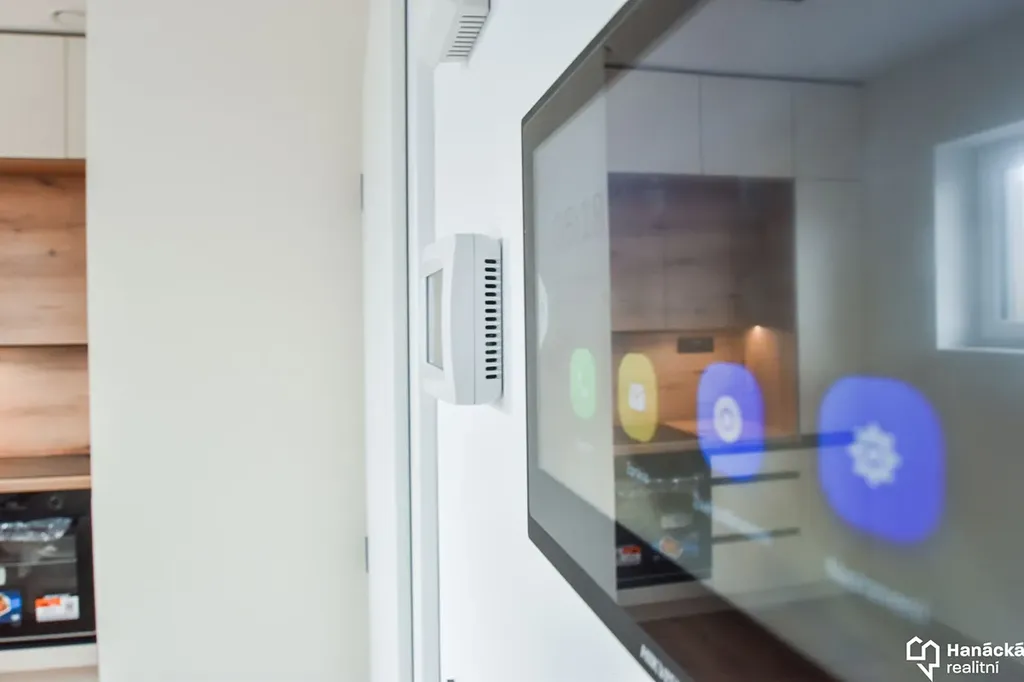 Byt disponuje podlahovým vytápěním, rekuperací s pasivním chlazením a venkovními elektrickými žaluziemi.