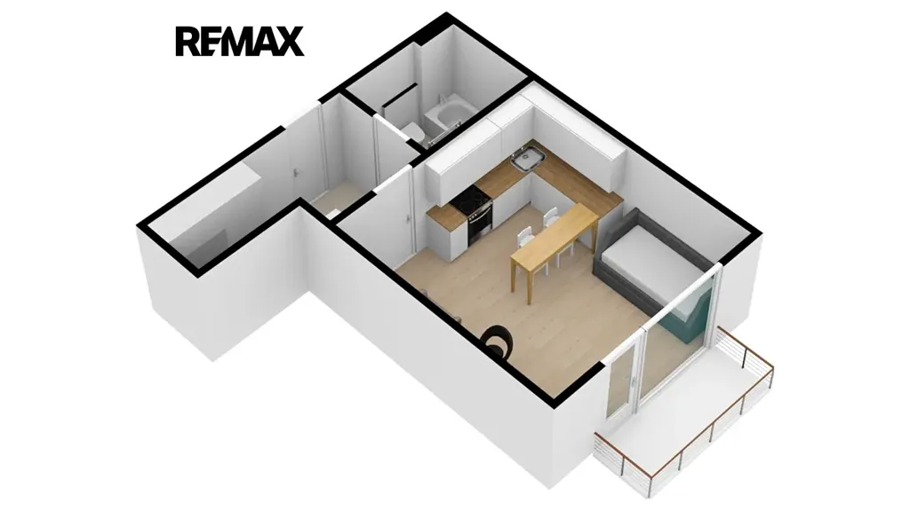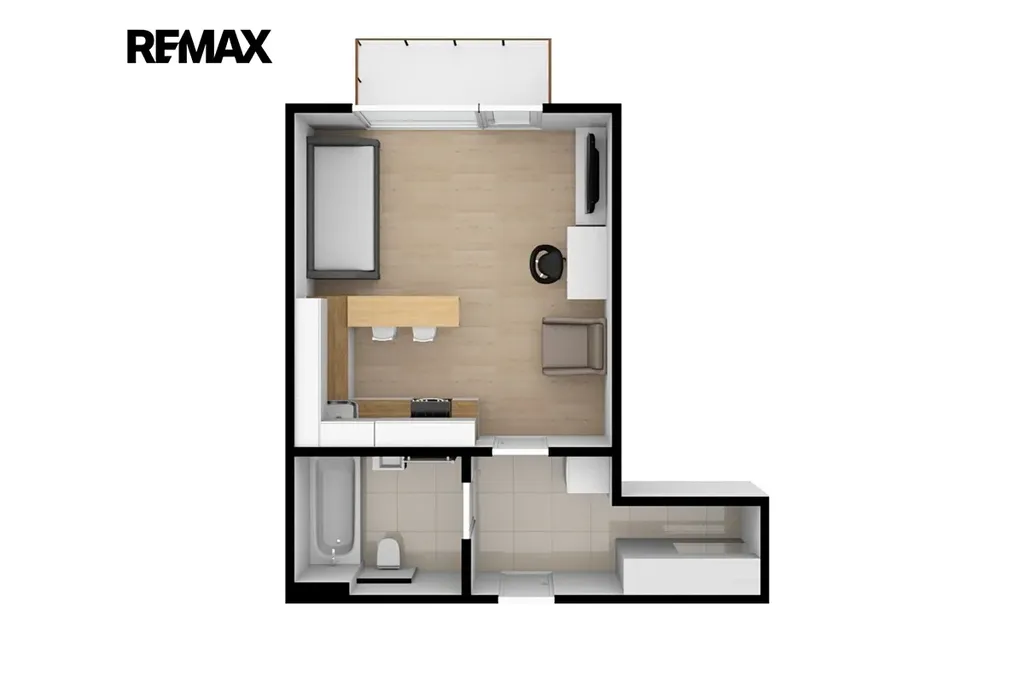 Prostor je prakticky řešen: vstupní chodba s prostornou vestavěnou skříní, koupelna s vanou a WC a hlavní obytná místnost s velkorysou kuchyňskou linkou vybavenou vestavěnými spotřebiči (elektrická trouba, sklokeramická varná deska, myčka nádobí). Díky velkému francouzskému oknu je obytná část světlá a slunná. Součástí bytu je také balkón, ideální pro ranní kávu, krátký odpočinek po práci nebo klidné posezení. Vytápění a ohřev vody jsou zajištěny ústředním plynovým vytápěním. Dům je moderní a dobře udržovaný a splňuje energetickou třídu PENB B, což znamená velmi úsporný provoz.