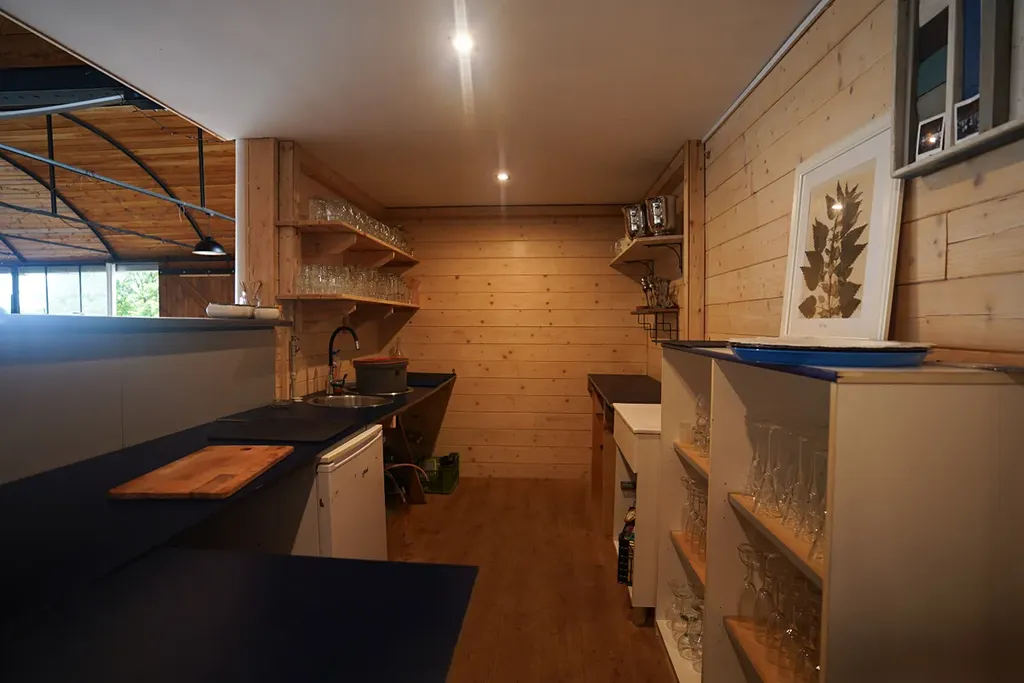 V areálu je dům s 2 bytovými jednotkami (3+kk a 2+kk) k němu je přilehlá zastřešená terasa o vel. 274m2 a v přízemí je sociální zázemí pro zaměstnance.
