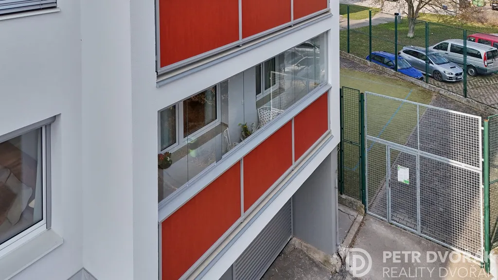 Lodžie o velikosti 6,9 m² s prosklením a deskami Fundermax je orientována do klidného zeleného dvorního prostoru. Plynová přípojka umožňuje přechod na samostatné vytápění nebo přípravu teplé vody.