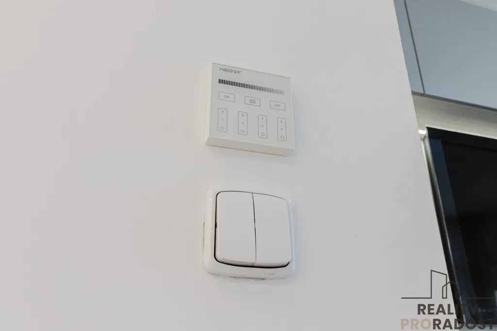 Kuchyňská linka je na míru z prémiových materiálů, včetně vestavěných spotřebičů - indukční desky, trouby, myčky, chladničky, mikrovlnné trouby a digestoře. Koupelna je vybavena sprchovým koutem, chytrým WC a pračkou. V obývacím pokoji a ložnici jsou plovoucí podlahy, v koupelně dlažba. Součástí je terasa 25 m² s panoramatickým výhledem. Byt má dvě klimatizační jednotky, dvě smart TV a připojení k internetu.