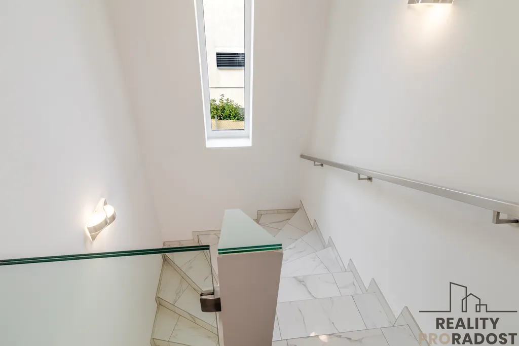Patro: čtyři pokoje s velkým balkónem 12,2m2 , vestavěná šatna v ložnici, ze dvou pokojů přístup na balkon. Koupelna s vanou Ravak Rosa, sprchovým koutem Hüppe, WC Geberit, obklady Villeroy & Boch Spotlight, baterie Hansgrohe. Bezfalcové dveře Sapeli, kování Tupai, podlahy Witex, osvětlení Philips LED, vypínače ABB Time.