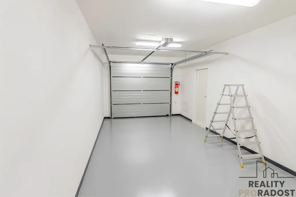 Garáž s el. vraty Hörmann + dvě vjezdové brány, jedna elektrická. Autobusová linka 321 IDS JMK (zastávka Všechovice, Rozcestí). Tišnov 5 min autem, vlak do Brna cca 40 min (linka S2), napojení na I/43 směr Brno cca 10 min.