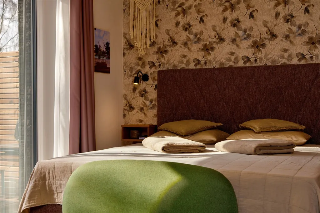 Dispozičně je apartmán řešen s důrazem na funkčnost, dostatek světla a přímé propojení interiéru s exteriérem prostřednictvím terasy a velké zahrady. Ze zádveří a chodby s šatnou navazuje koupelna s WC. Dále prostor přechází do hlavní obytné části spojené s kuchyní, ze které je vstup na prostornou terasu a zahradu. Zde naleznete ideální zázemí pro relaxaci: zahradní nábytek, vlastní saunu, venkovní sprchu a okrasné záhony. Zahrada nabízí výhled na hladinu jezera a nachází se ve velmi klidné části obce, přesto v pohodlné docházkové vzdálenosti na pláž i do samotného centra Lipna.