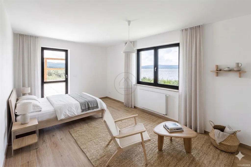 V ceně je zahrnuta kuchyňská linka, velkoformátové keramické obklady, dlažba a kompletní sanitární vybavení. K bytu lze dokoupit vlastní parkovací stání. Objekt je napojen na ČOV, vytápění a ohřev TUV zajišťuje úsporné tepelné čerpadlo. Okolí domu tvoří otevřená zahrada s přímým výhledem do zeleně a na vodu.