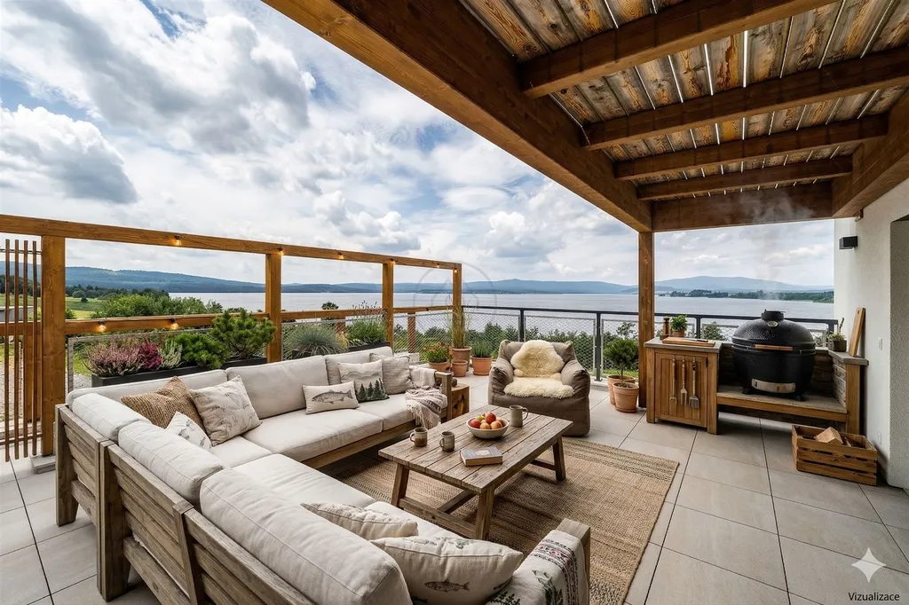 Představujeme vám tento exkluzivní apartmán v první linii v Kovářově s velkorysou terasou a podmanivým výhledem na Lipenskou přehradu.