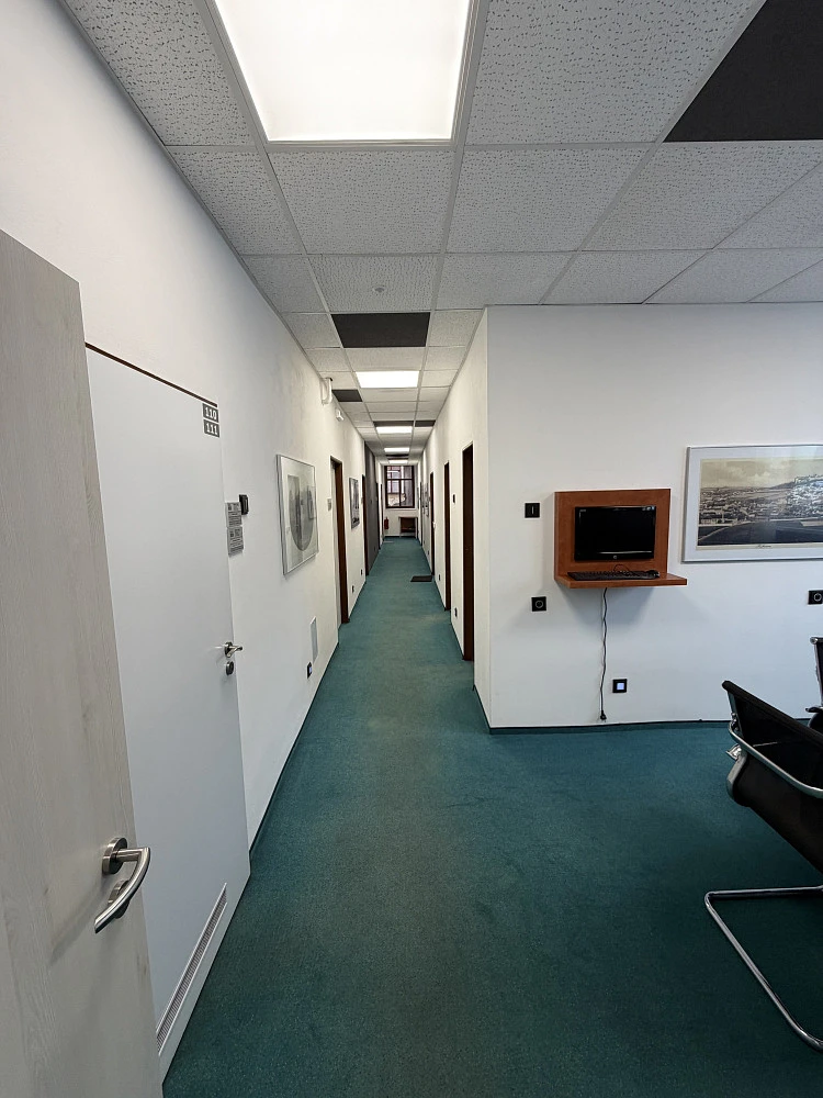 Nabízíme k pronájmu kancelář o výměře 19 m² ve 2. nadzemním podlaží administrativní budovy v ulici Dlouhá 97 v Příbrami. Na patře je k dispozici sdílená kuchyňka, WC a zasedací místnost vhodná pro jednání s klienty. Nájemné činí 4241 Kč měsíčně bez DPH, záloha na energie a úklid společných prostor je stanovena ve výši 1 500 Kč měsíčně. Možné pronajmout parkovací stání ve vnitrobloku za 500,-Kč/měs. Kancelář je k dispozici od března 2026. Kauce je ve výši jednoho měsíčního nájmu a provize činí 3000 Kč. Prostor je vhodný pro administrativní činnost nebo drobné podnikání.