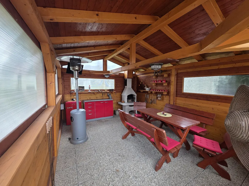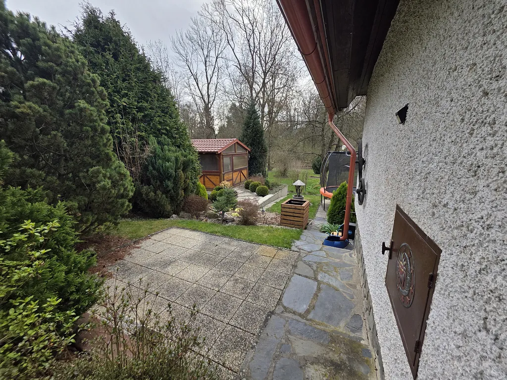 Součástí nemovitosti je také krásně upravená zahrada, která poskytuje dostatek soukromí a prostoru pro odpočinek. K dispozici je zahradní domek s krbem, ideální pro posezení s rodinou či přáteli.