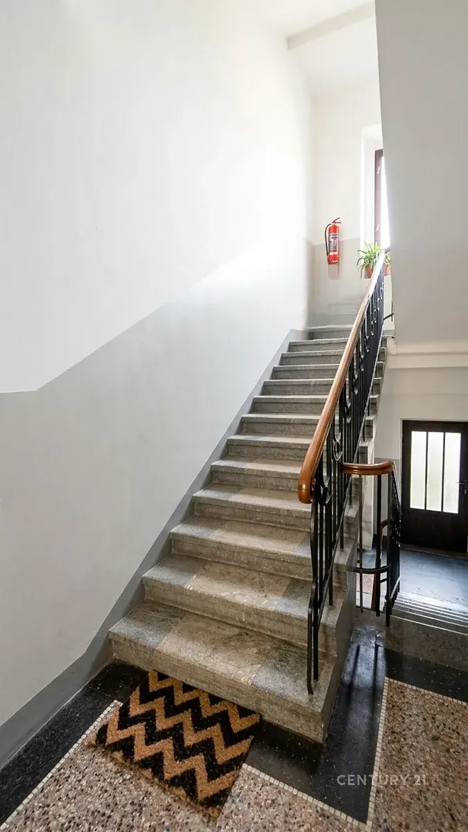 * Interiér: Vysoké stropy (možnost vestavby vnitřních pater), masivní schodiště, původní zachovalé dveře a secesní prvky.
