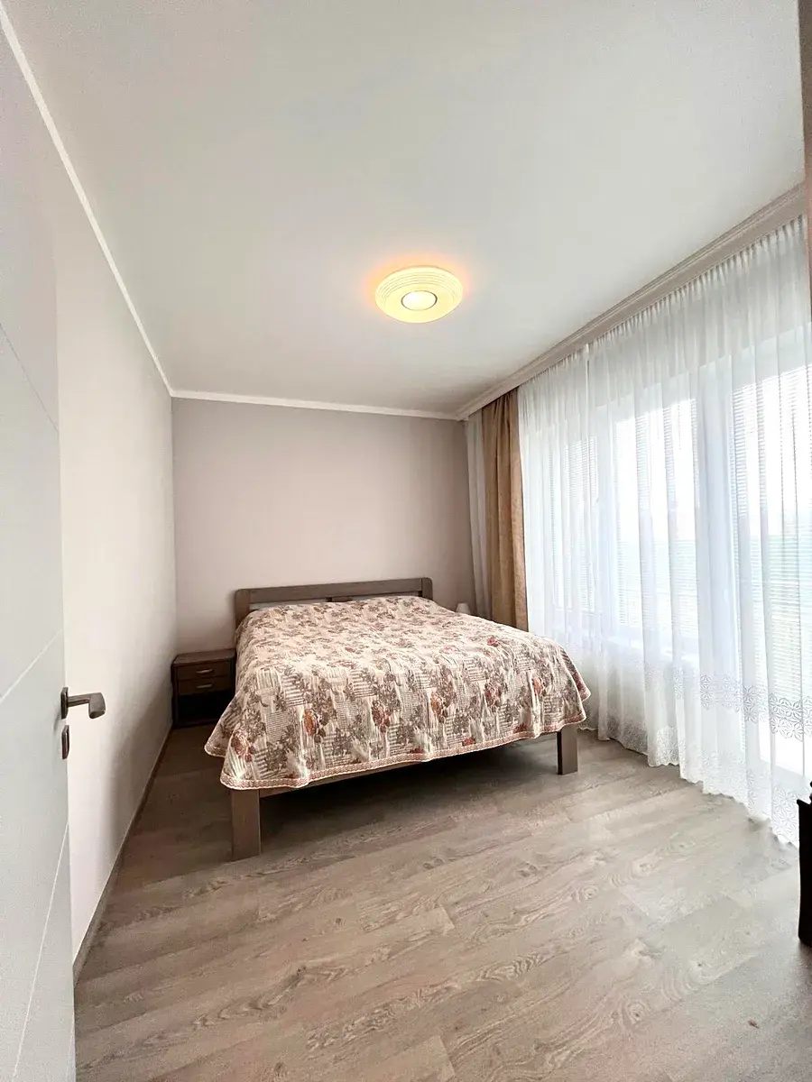 Byt má velký obývací pokoj s kuchyní a východem na terasu a zahradu, 3 ložnice s východem na zahradu, koupelnu se sprchou, vanou a WC, druhé WC je umístěno zvlášť. Byt má velkou předsíň a šatnu. Vedle vchodu do bytové jednotky je umístěna komora na odkládání věcí. Byt se prodává včetně veškerého zařízení.