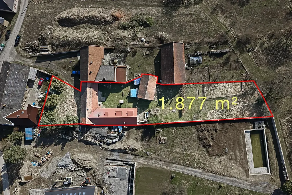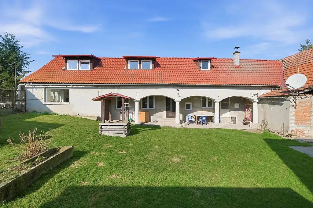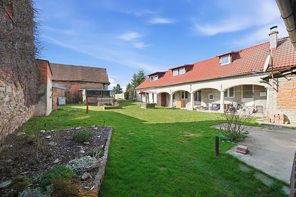Tento prostorný dům o dispozici 3+kk a celkové užitné ploše 216 m2 stojí spolu se dvorem a výměnkem na pozemku o výměře 677 m². K domu dále náleží užitková zahrada o výměře 838 m² a pozemek před domem o rozloze 362 m², ideální pro zřízení okrasné předzahrádky.
