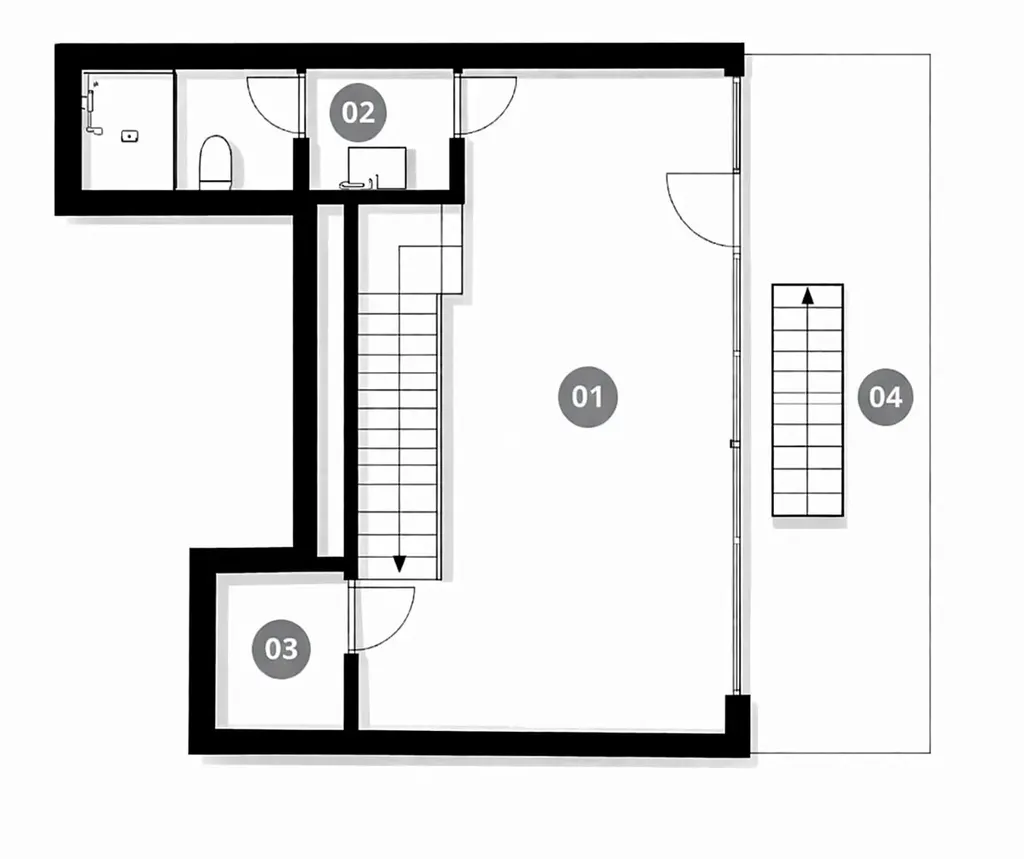 Dominantou spodního podlaží je velkorysý, světlý obývací prostor propojený s moderní kuchyní, s přímým vstupem na terasu. Ta představuje ideální místo pro relaxaci, soukromé posezení i společenská setkání s jedinečným výhledem na město.