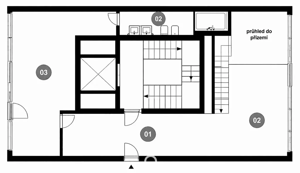 Na tomto podlaží se dále nachází koupelna s toaletou.