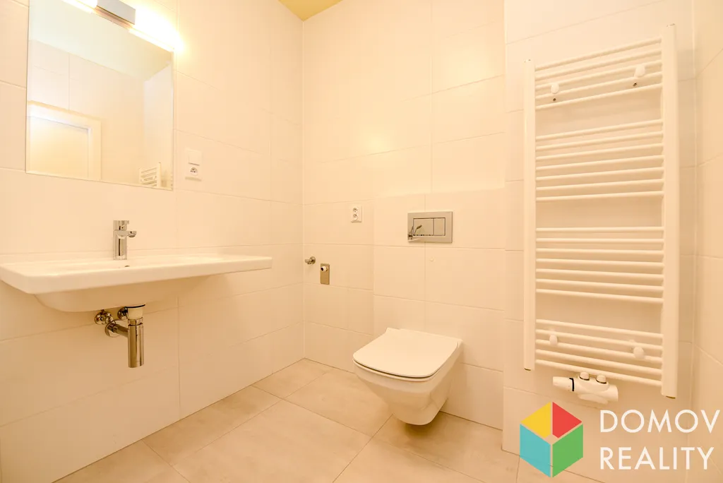 V bytě jsou k dispozici dvě koupelny, jedna se sprchovým koutem a druhá s vanou. K ukládání velkého množství věcí Vám poslouží elegantní a hlavně praktické vestavěné skříně od firmy Komandor v ložnicích a v chodbách v obou patrech.