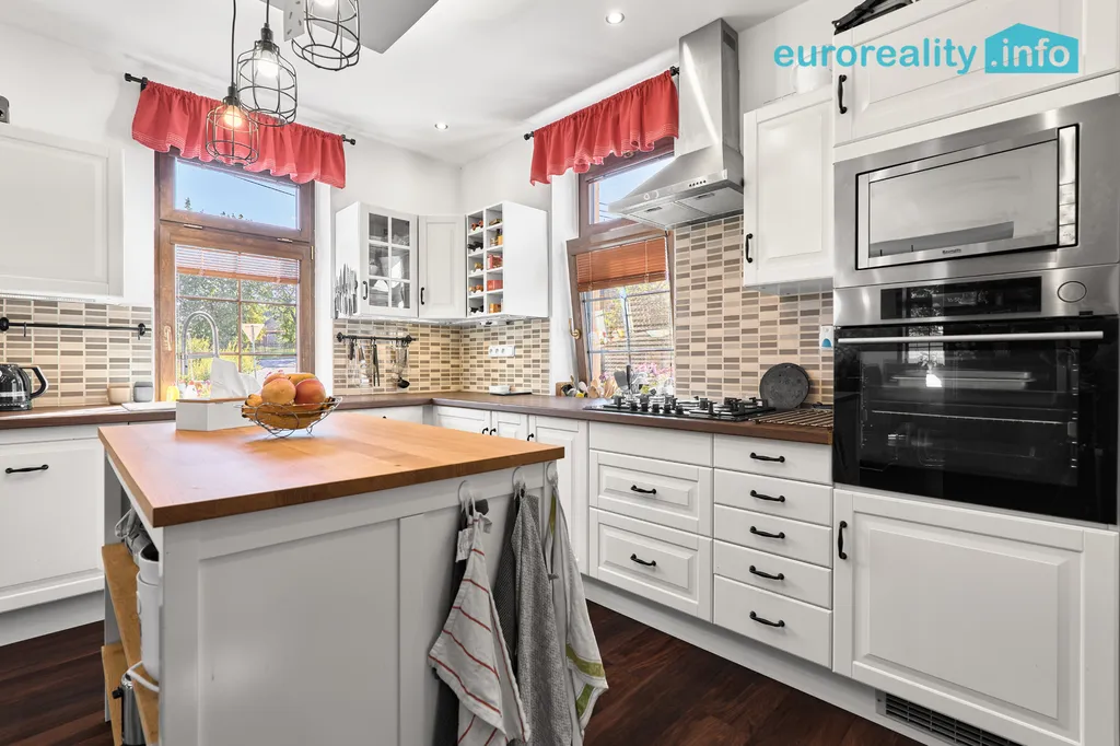 Nabízíme k prodeji velmi specifickou nemovitost, která může splnit mnoho představ budoucích majitelů. Jedná se o komplex dvou rodinných domů, velké dílny (garáže) s rozsáhlou zahradou, bazénem, pergolou a technickým přístavkem. První rodinný dům - dvoupatrová, zděná, podsklepená stavba z poloviny minulého století, byla zcela zrekonstruována a nabízí vkusně zvolený design s velmi dobrou dispozicí. V přízemí se nachází kuchyně s obývacím pokojem, koupelna s WC, pokoj se saunou a další koupelnou, v prvním patře jsou umístěny tři pokoje a koupelna s WC. Na zahradě před domem je kopaný bazén, letní - kompletně vybavená kuchyně v pergole s promítacím plátnem a posezením. Předmětem prodeje je dále druhý rodinný dům (zast. plocha 115m2), který je ve fázi výstavby. Jedná se o dvoupatrovou zděnou stavbu s dispozicí 4+1, která je připravena k dokončení dle představ nového majitele. Poslední stavba - velká garáž (112m2) s dílnou může sloužit jako skvělé místo k podnikání, či k jinému účelu. Na domy byly využity kvalitní materiály a díky moderním technologiím jsou energeticky výhodné. Rovinatá, velmi pečlivě udržovaná zahrada je kompletně oplocena a nabízí soukromí v klidném prostředí. Sadov je moderní obec s občanskou vybaveností a skvělou dopravní dostupností. Doporučujeme prohlídku. Možno financovat hypotékou, kterou vám rádi zdarma vyřídíme v rámci našich služeb.