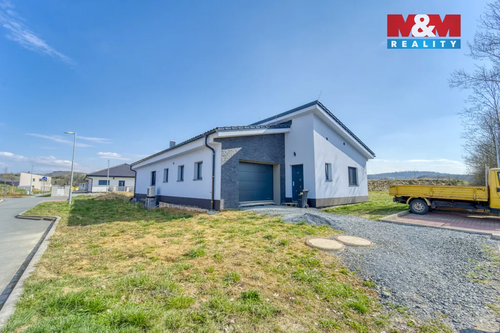 Na prodej unikátní novostavba rodinného domu v Blovicích s užitnou plochou 161m2. Dispozice domu je 5+kk a je řešena na vstupní chodbu, technickou místnost, koupelnu se sprchovým koutem, separátní toaletu, tři samostatné pokoje, kuchyň spojenou s obývacím pokojem a vstupem na terasu. K domu náleží garáž s prostupem do domu. Součástí prodeje je pozemek o výměře 814m2. Teplo Vám zde zajistí podlahové topení a v obývacím pokoji najdete krbová kamna. V celém domě jsou předokenní rolety. Dům je vymyšlen do každého detailu a je ideální pro rodinu. S financováním Vám rádi zdarma pomůžeme. Těšíme se na Vás na prohlídce.