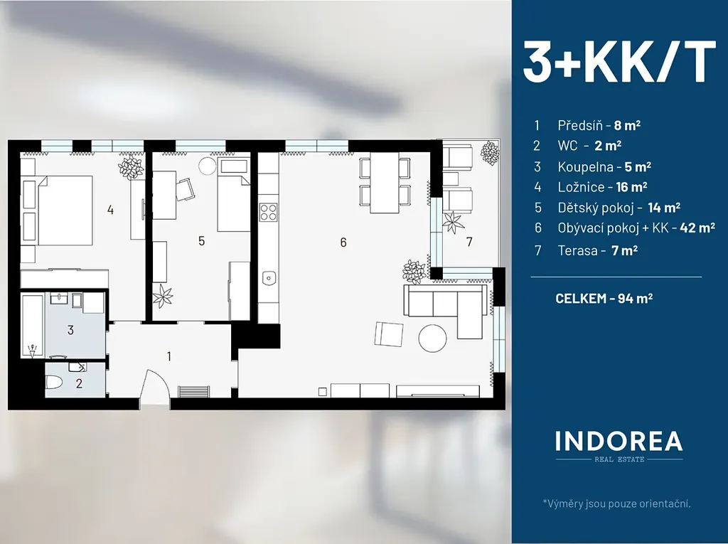 Plocha bytu 87 m2 + terasa 7 m2 + sklep 3,7 m2 + obrovské garážové stání s přípravou na nabíjecí stanici pro elektromobil..
