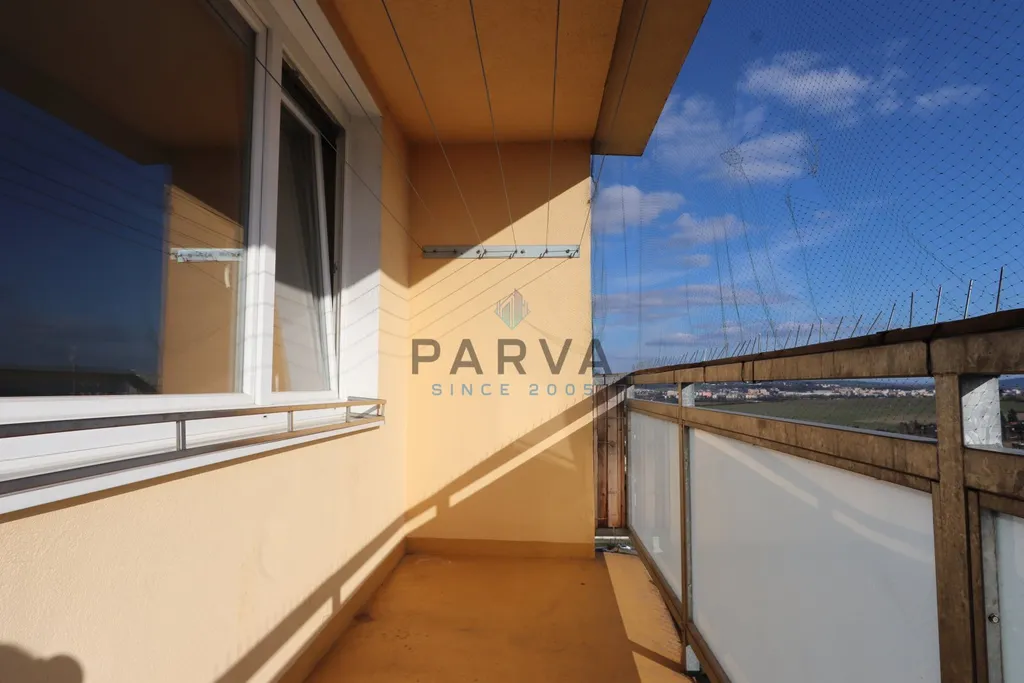 V bytě se nachází chodba s vestavěnými šatními skříněmi. Po pravé straně umakartové jádro , umyvadlo , menší vana a WC. Pokoj s kuchyňským koutem. Kuchyňská linka je z bílého lamina. Dominantou bytu je prostorná lodžie s výhledem do dalekého okolí.
