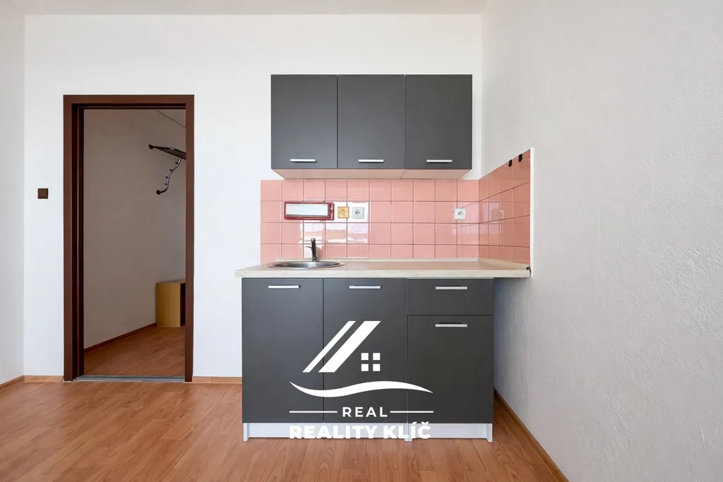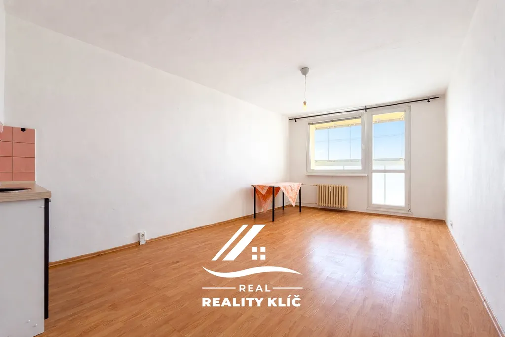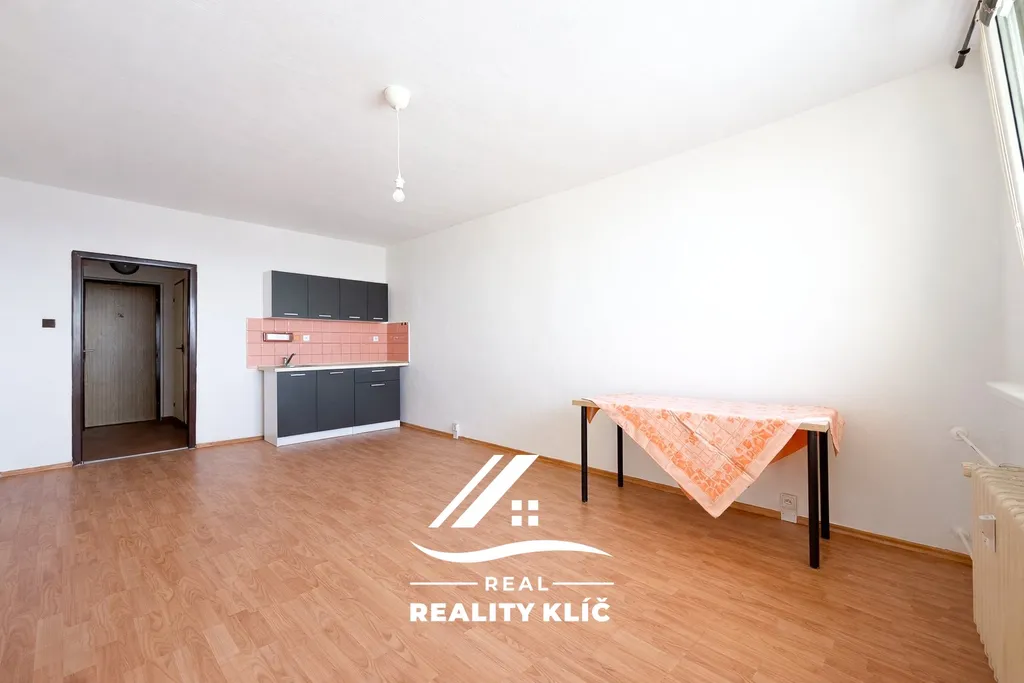 Nabízíme k pronájmu světlý byt o dispozici 1+kk nacházející se v 15. patře panelového domu s výtahem.
