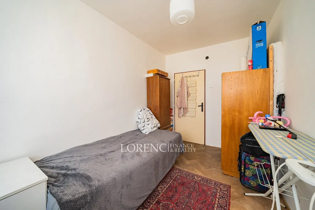 Na pravé straně se nachází pokoj o velikosti cca 10 m², který je ideální jako dětský pokoj, pracovna nebo pokoj pro hosty. Dominantou bytu je prostorný obývací pokoj o velikosti cca 19 m² s přímým vstupem na balkon, který poskytuje příjemné místo pro ranní kávu či večerní odpočinek.