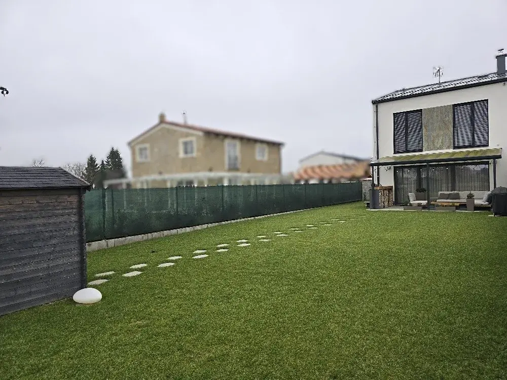 Jedná se o novostavbu rodinného domu (Energetická třída B - velmi úsporná) se dvěma bytovými jednotkami. Každá z jednotek je se samostatným vchodem, ke každé náleží vlastní oplocená zahrádka s terasou a pergolou 5,45x3m s přímím vstupem z obývacího pokoje a s zahradním domkem 2x2,5 m, dvě vymezená parkovací stání na uzavřeném/oploceném pozemku s pojezdovou bránou na DO. Udržovaný trávník s automatickou sekačkou.