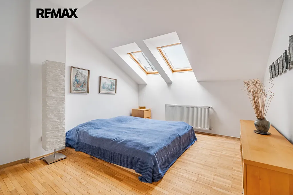 Byt vyniká příjemnou atmosférou a dostatkem přirozeného světla, které do interiéru přivádějí střešní okna. Hlavní obytný prostor tvoří obývací část s kuchyňským koutem, vybaveným kuchyňskou linkou včetně spotřebičů a prostorem pro jídelní stůl. Samostatná ložnice poskytuje klid a dostatek soukromí. Součástí bytu je také koupelna se sprchovým koutem a toaletou.