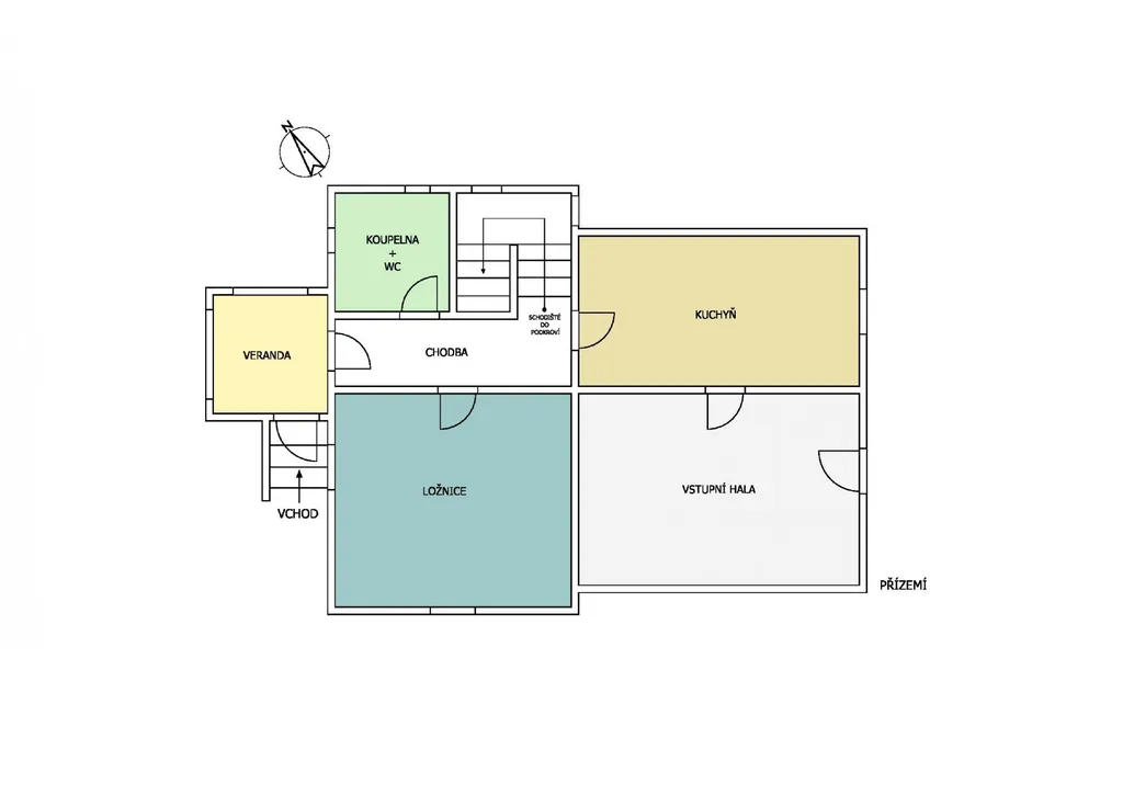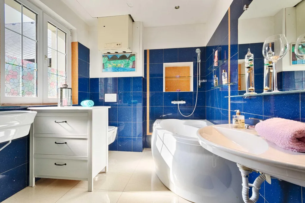 Mimořádně zajímavá a praktická je dispozice vnitřních místností. Když projdete vchodovými dveřmi, přivítá vás útulná místnost, sloužící jako vstupní hala, ideální pro posezení s rodinou nebo s přáteli. Odtud se dostanete do prostorné kuchyně a dále do chodby, z níž je přístup do ložnice, a také do koupelny s toaletou. Dominantou efektní modré koupelny je parádní hydromasážní vana, v níž se každá koupel stane opravdovým zážitkem. Na konci chodby se pak nachází veranda - ta může po rekonstrukci sloužit buď jako nový vstup do domu nebo coby další prostor pro menší posezení, eventuálně zimní zahradu. Celá spodní část domu je navíc bezbariérová - stávající majitelka nechala přízemí upravit tak, aby bylo možné projet i s invalidním vozíkem.
