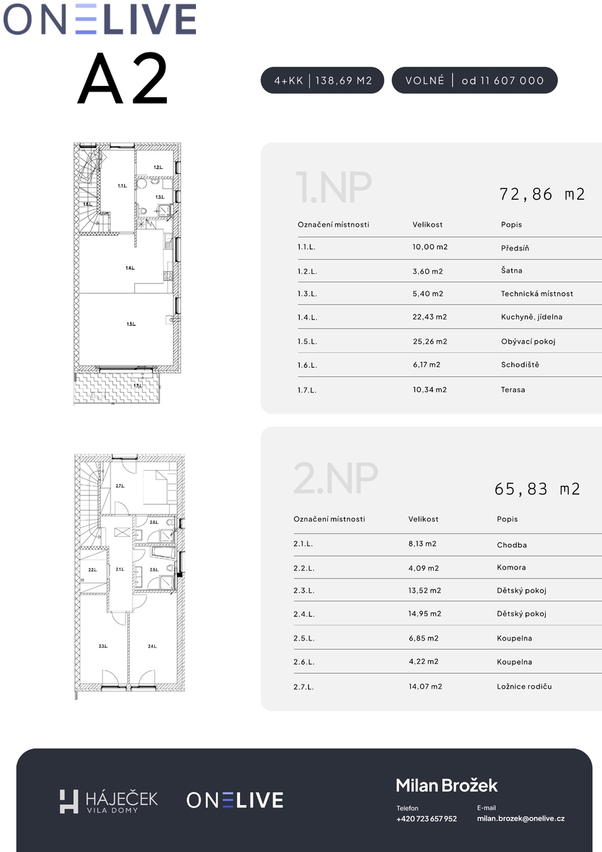 Na výběr jsou dvě varianty dokončení – SHELL & CORE a PREMIUM – v cenových hladinách od 11.607.000 Kč do 12.557.000 Kč. Detailní standardy provedení jsou k dispozici na webových stránkách projektu nebo Vám je rádi představíme při osobní schůzce v showroomu.