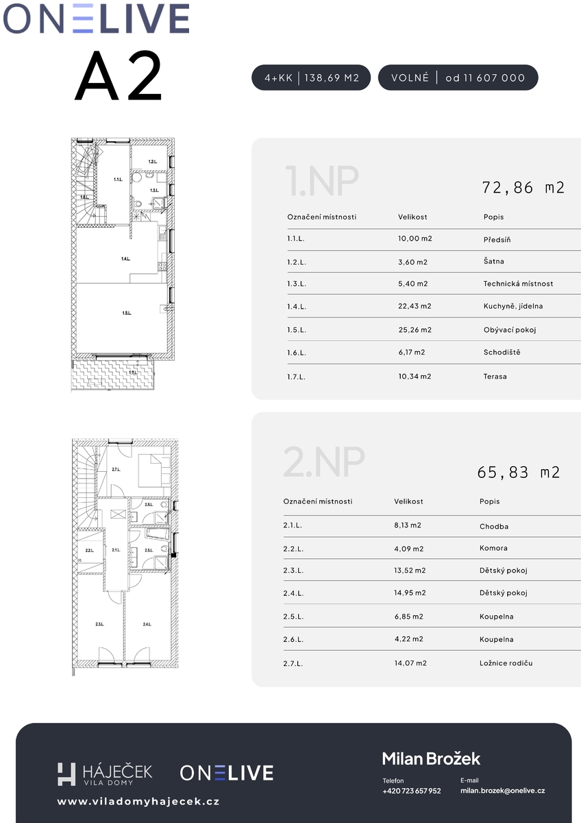 Na výběr jsou dvě varianty dokončení – SHELL & CORE a PREMIUM – v cenových hladinách od 11.607.000 Kč do 12.557.000 Kč. Detailní standardy provedení jsou k dispozici na webových stránkách projektu nebo Vám je rádi představíme při osobní schůzce v showroomu.