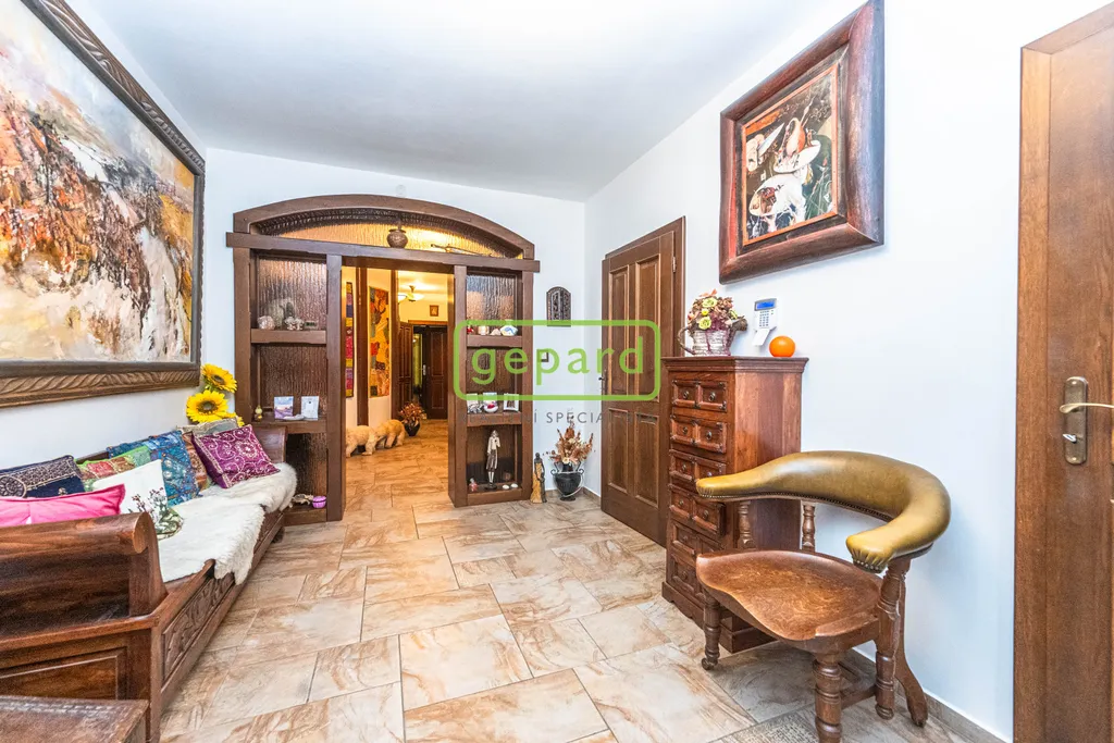 The highlight of the house is an indoor swimming pool with a counter-current system and dedicated air dehumidification, complemented by a private gym, fireplace, and three full bathrooms. The interior features high-quality, durable materials throughout, including wooden euro windows, a solid oak staircase, ceramic tiles, and wooden flooring, creating an elegant and long-lasting living environment.