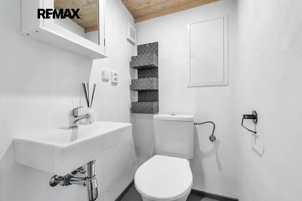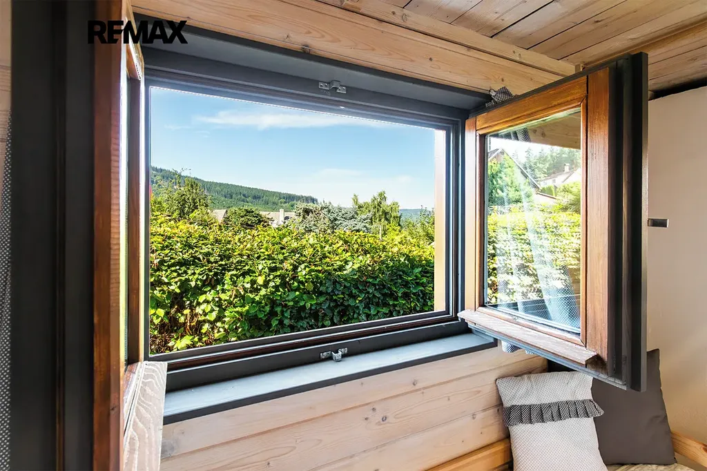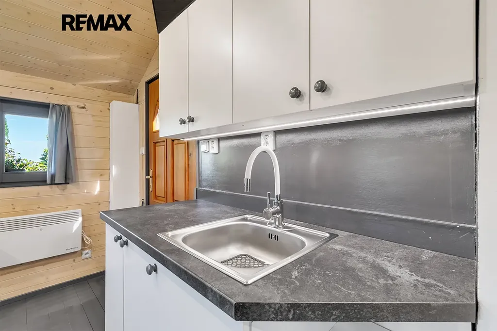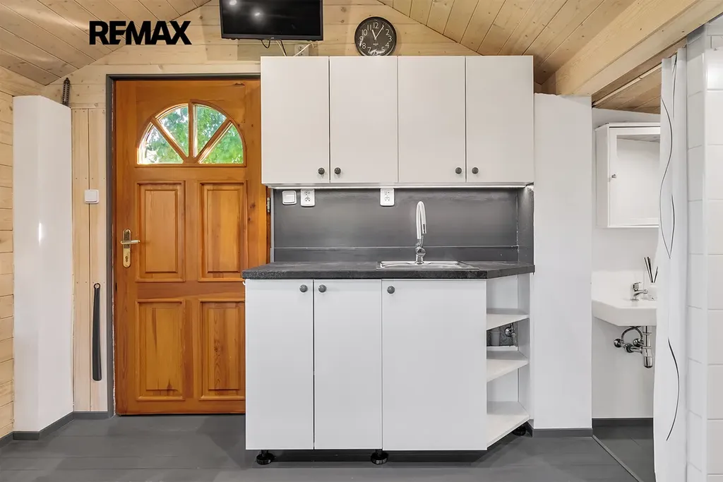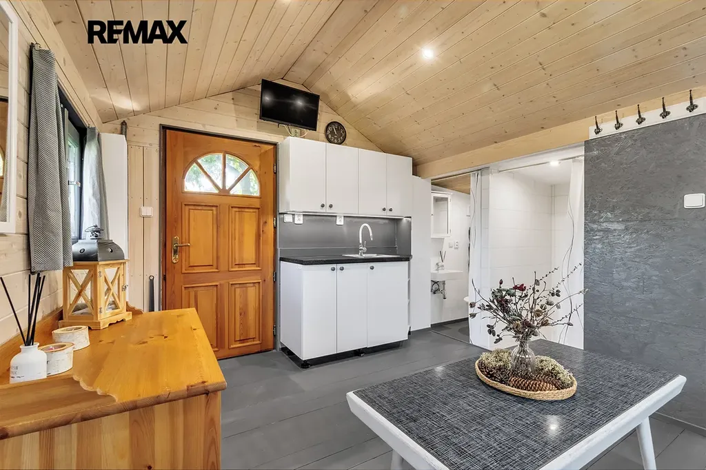- vybavení: dřevěná podlaha, dřevěná okna, kuchyňská linka s přípojkou na myčku, umyvadlo, sprcha a WC, šatna s místem na pračku, lednice, TV