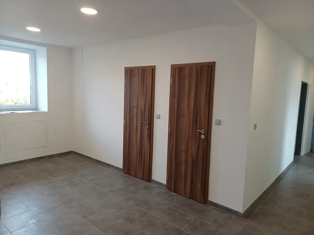 Nabízíme ve výhradním zastoupení majitele k pronájmu prostor, velice pěknou a prostornou jednotku 100m2 s dispozicí 4+1 situovanou v přízemí budovy v komerčního objektu. Byt je nově vymalován ve výmalbě bílé barvy, jsou instalována nová stropní osvětlení a také je nová koupelna-obklady, dlažba, sprchový kout atd. Samostatný vchod s bezbariérovým vstupem do jednotky zaručuje soukromí. V prostoru jsou 3 samostatné pokoje, zádveří, hala nebo obývací pokoj, 1x technická místnost, 2x samostatné sociální zařízení s umyvadlem, jeden pokoj vybudován jako prostorná šatna, z hlavní obytné místnosti je členitý otevřený vstup do nově zrekonstruované kuchyně s jídelnou v níž je nově zabudována pěkná kuchyňská linka se sklokeramickou varnou deskou a vestavnou elektrickou troubou, nová digestoř, nová vestavná lednice s mrazákem a prostorem pro uskladnění potravin. Nová prostorná koupelna se sprchovým koutem, pokoj se vstupem do šatny a další samostatný pokoj, výhodou jsou neprůchozí pokoje a dvě samostatné toalety. Budova je zateplena, podlahové vytápění v celém prostoru, vytápění plynovým kotlem, ohřev vody zajišťuje bojler plastová okna, bezbariérový přístup, internet 140,-Kč měs ,parkování na pozemku přímo u budovy. Měsíční zálohy na spotřebu elektřiny 1.500,-Kč , studenou vodu 1.000,-Kč , zálohy na plynové vytápění 2.500,-Kč celkem zálohy 5.000,-Kč/měs. + poplatek za internet 140,-Kč měs. Vyúčtování spotřeby za poskytované služby se provádí co tři měsíce. K dispozici nájemci je soubor nábytku v ložnici a šatně, v pokoji psací stůl a šatní skříň, v technické místnosti automatická pračka. K tomuto nájmu již nejsou k dispozici nájemci žádné jiné úložné prostory jako např. sklep nebo kolárna. Vše v dosahu , nákupní možnosti, autobus, vlak. Prohlídky nemovitosti po dohodě s makléřem. Prostor je ihned volný pouze dlouhodobě a pro seriózní a klidné nájemce v sousedství se nachází podnikatelské subjekty. Bližší informace poskytne makléřka na prohlídce.Pokud Vás nabídka zaujala kontaktujte mě prosím na sjednání prohlídky.Děkuji