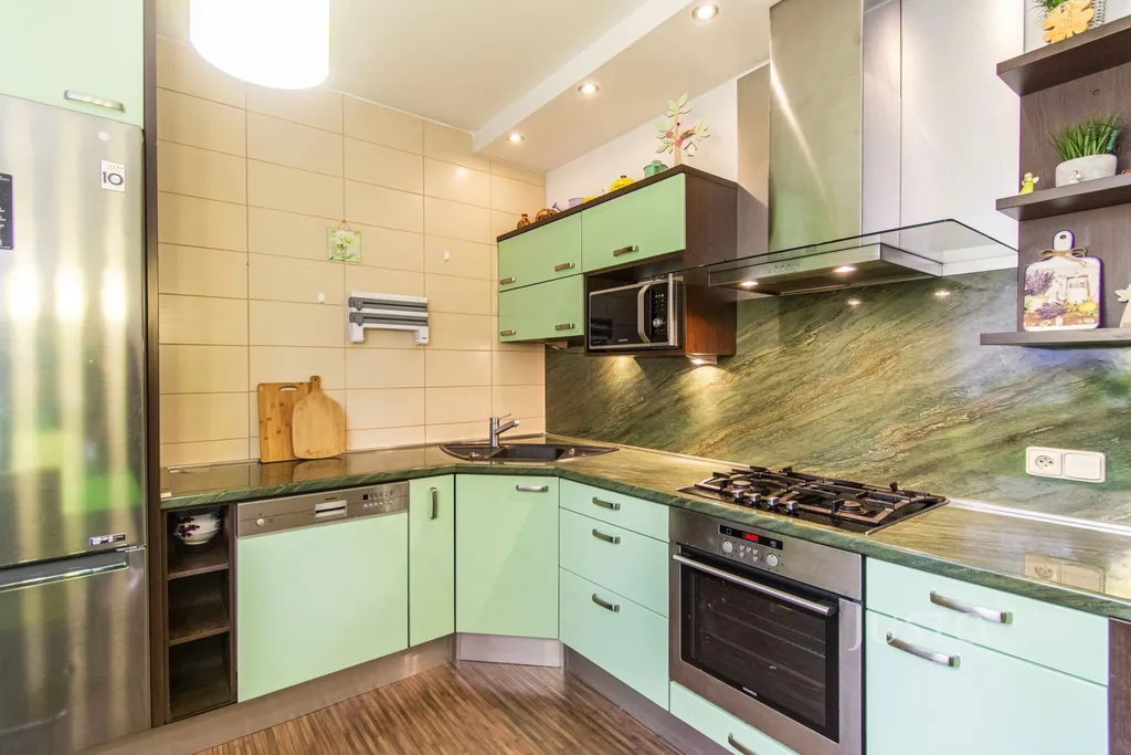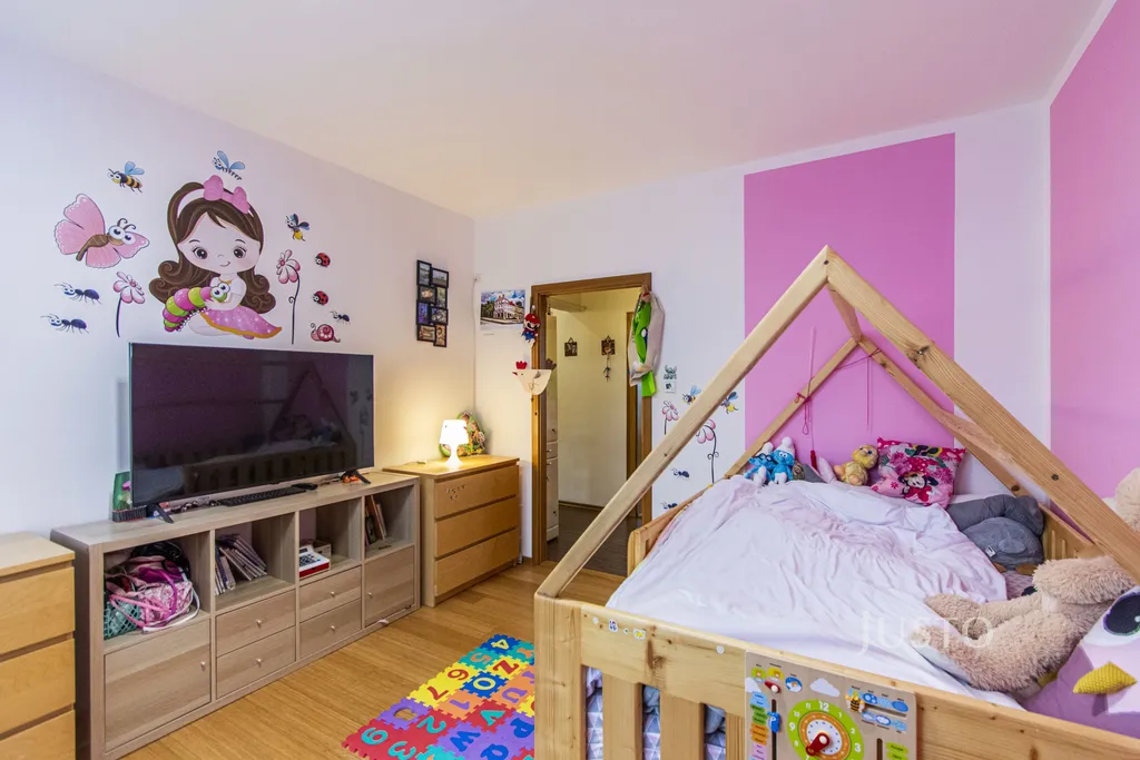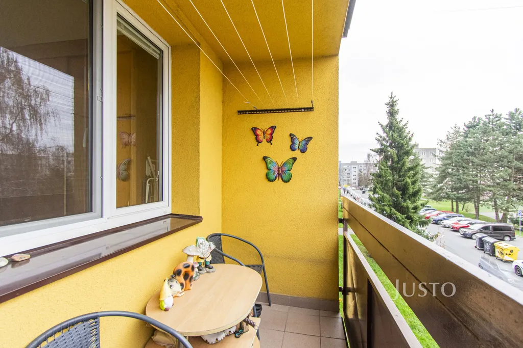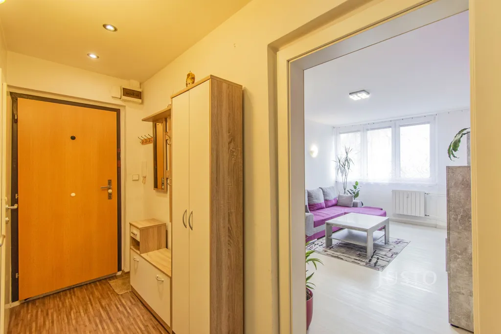 Byt samotný má již vyzděné jádro, koupelna je od toalety oddělena. Obývací pokoj má výměru 18 m², pokoje 18 m² a 15 m². Byt disponuje skvělou uzavíratelnou komorou, ve které jsou policové až po strop a díky nim je v této místnosti spousta úložného prostoru. Kuchyně (12 m²) je vybavena linkou na míru, vestavnou myčkou, digestoří, plynovým sporákem a troubou. O ostatních spotřebičích je možno jednat, zda v bytě zůstanou či nikoliv. V jednom z pokojů ale určitě zůstane vestavná skříň, která je po celé délce pokoje.