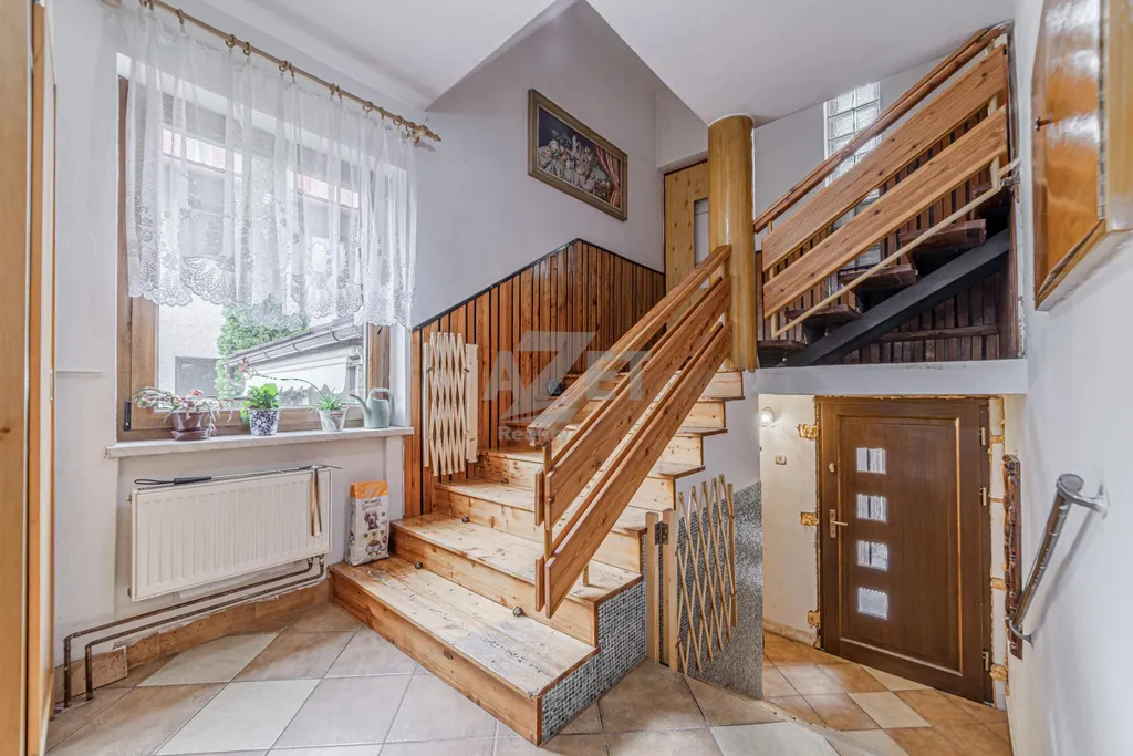 Naše společnost Vám ve výhradním zastoupení majitele nabízí dvougenerační, celopodsklepený, zděný rodinný dům o dispozici 6+2 v dobře dostupné části Českého Těšína. Nemovitost je koncipována jako dvougenerační, což umožňuje nezávislé bydlení až pro dvě domácnosti, ale může posloužit i jedné větší rodině. Součástí prodeje jsou další dvě přidružené, dvoupodlažní budovy. Jedna z nich je vedená jako dílna a 2. NP je vhodné na provozování firmy s veškerým zázemím.
